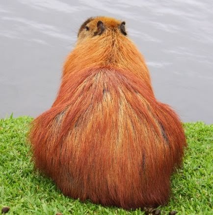 E depois rapidamente, o corpo todo da capivara se contorce no desvio das cotoveladas a procura de outro lugar, com medo de uma reação mais selvagem dessa espécie tão imprevisível e ameaçadora.
